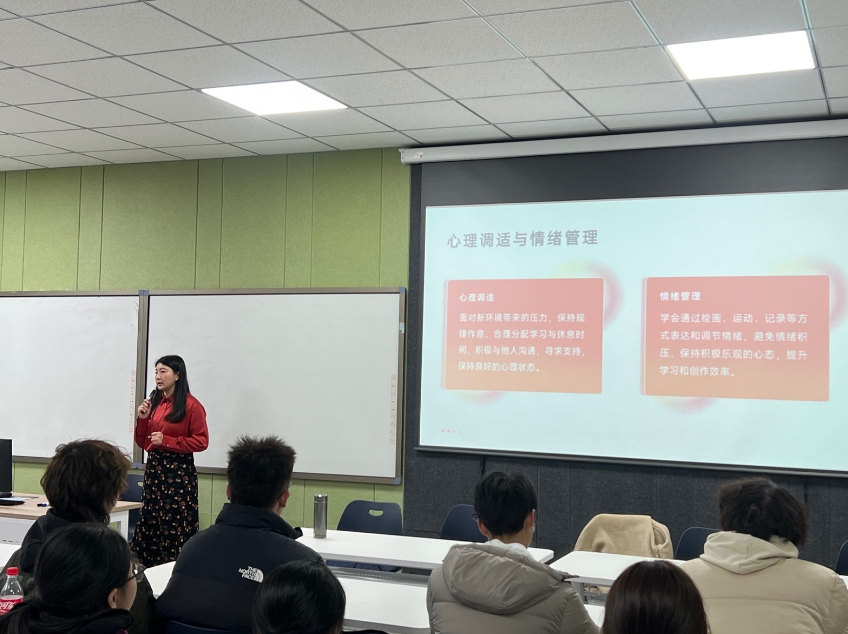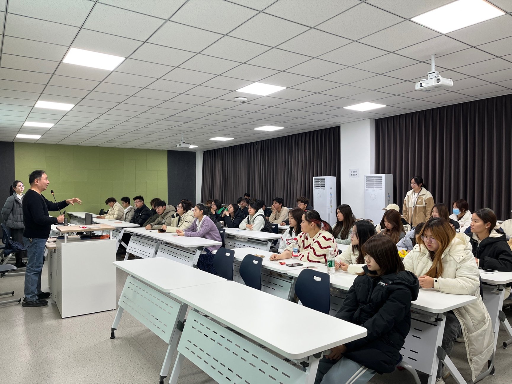 张春焱老师从“专业概况”“学习规范与资源使用”“心理调适与安全指南”“职业规划与核心能力”“成长行动建议”等多个方面进行了深入讲解。她强调,大一阶段是夯实美术基础与培养创新思维的关键期,应注重时间管理与自我规划。同时,张老师提醒同学们保持良好心态,科学安排作息,正确应对学习与生活压力,增强安全意识,营造积极健康的学习环境。她鼓励同学们尽早制定职业目标,积累作品,积极参与项目,不断提升自身的专业能力与综合素养。