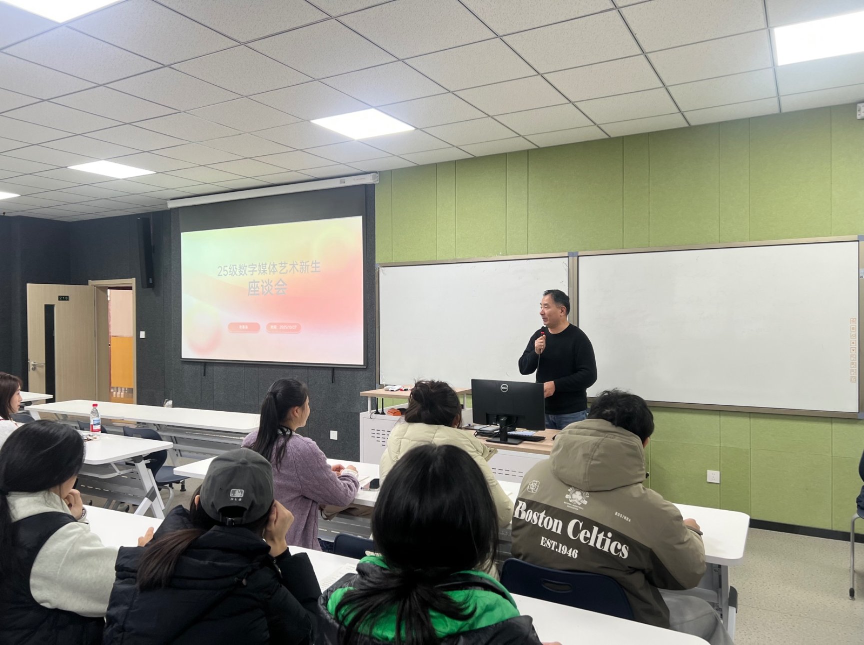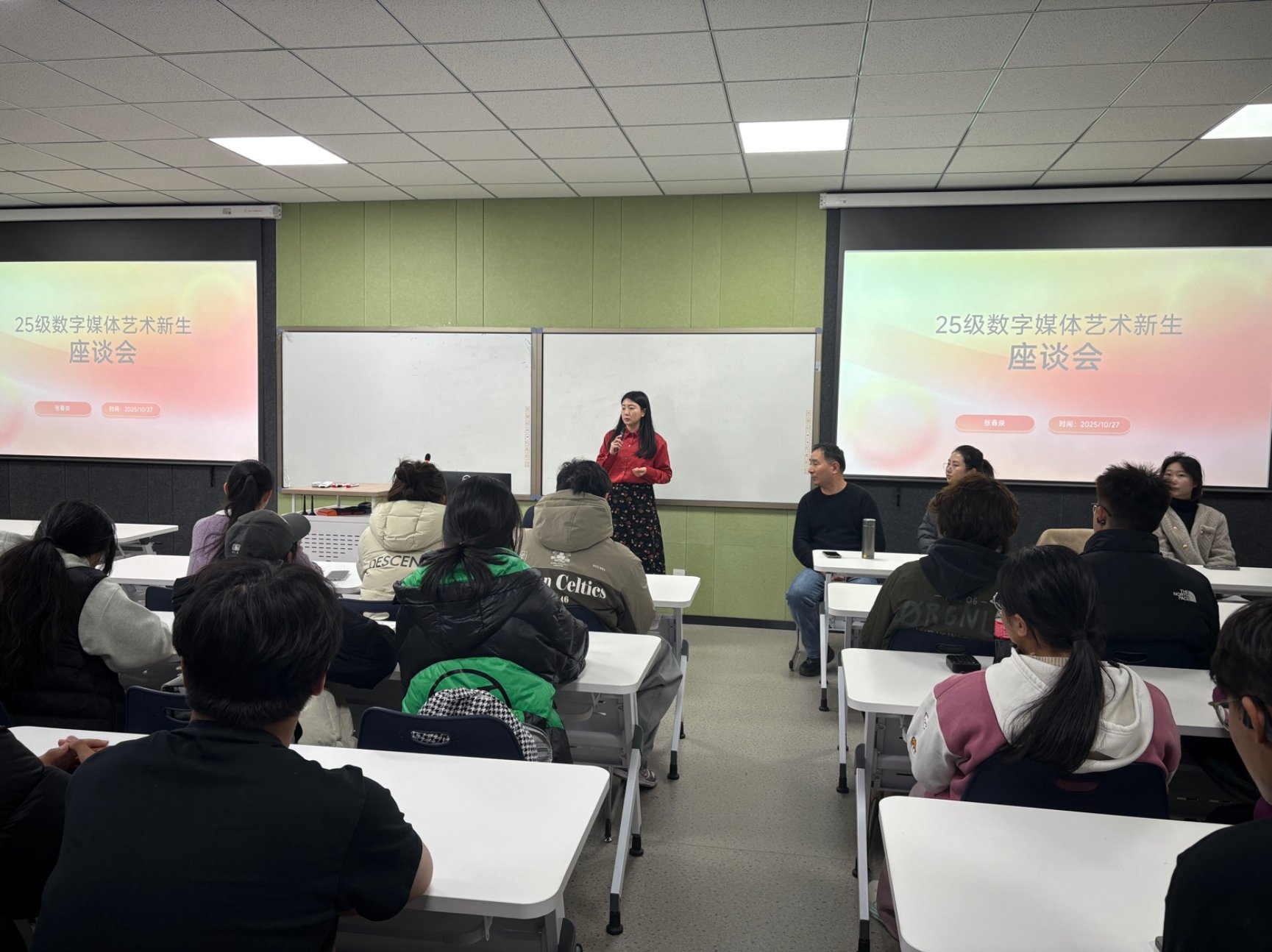 本次座谈会不仅是2025级数字媒体艺术专业4班新生了解专业与学院的重要契机,更是一座连接思维与实践的桥梁。相信在学院与教师的悉心指导下,数字媒体与信息设计专业的新生们将以热情与创造力,在未来的大学时光中书写属于自己的精彩篇章。(传媒院 张春焱供稿)