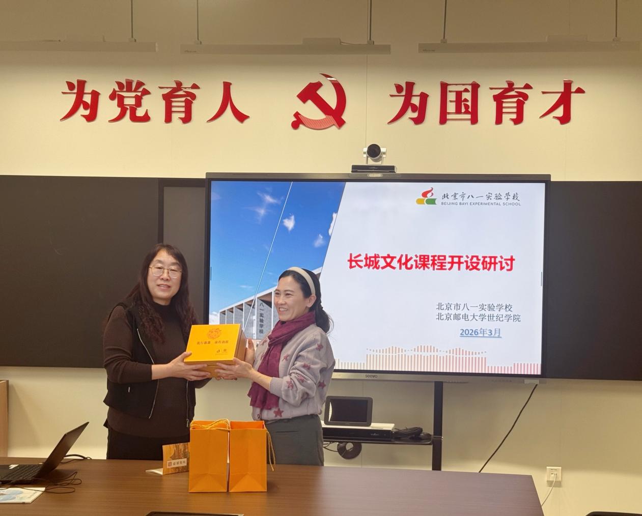 为深入推动长城文化的传承与创新,探索基础教育与高等教育协同育人的新模式,3月2日,艺术与传媒学院副院长陈薇,教工党支部书记姬世祥和教师代表陈超华、周艳霞、姬旭等一行赴北京市八一实验学校进行合作洽谈。北京市八一实验学校(以下简称“八一实验”)副校长时海伶、初一年级组负责人及相关教师参会,双方围绕 “北京长城文化青苗创新人才培养计划” 深入交流,达成重要合作共识。