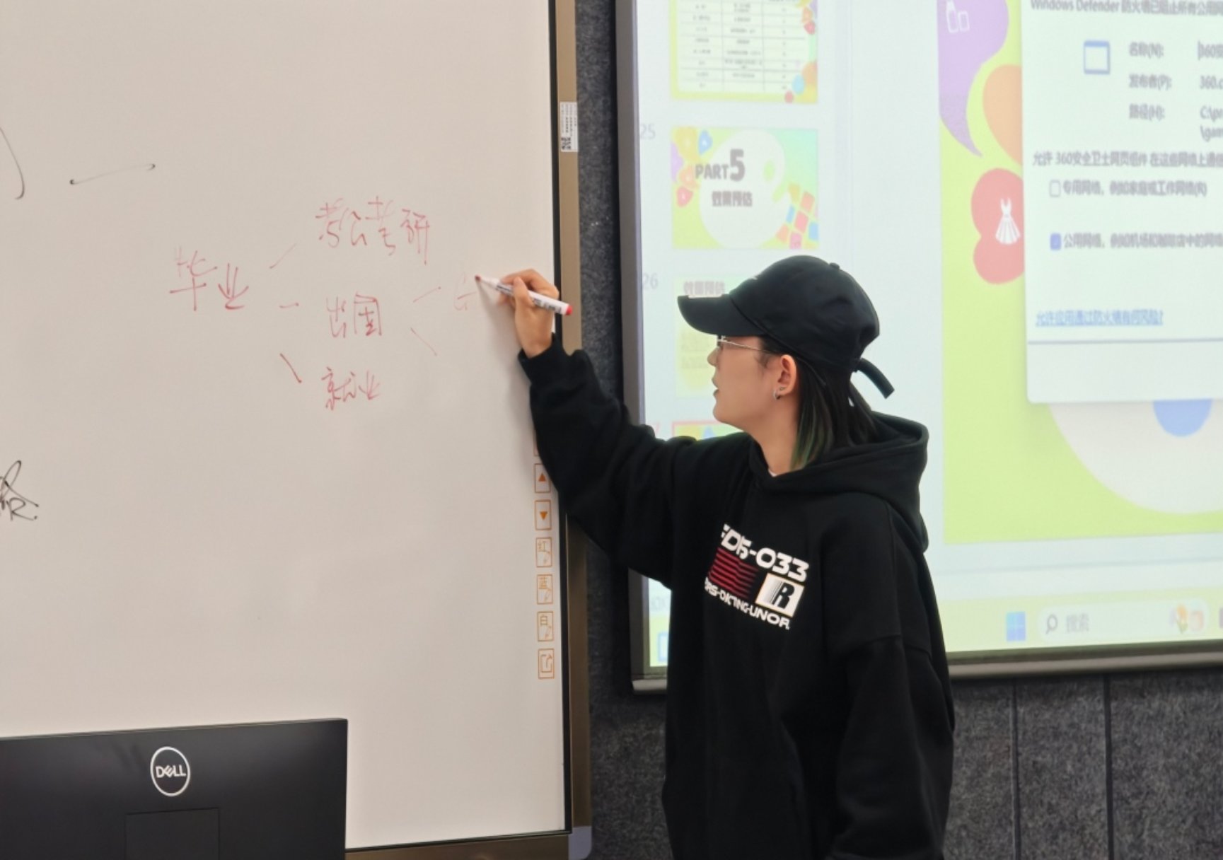 计划出国深造的田佳鑫学长,聚焦“留学升学”主题带来针对性分享,重点围绕绩点的核心重要性、留学申请的完整时间线、作品集的筹备逻辑与优化方向等关键内容展开细致讲解,为有留学意向的同学清晰梳理了备考与申请的核心路径。她结合自身真实的留学申请经历,拆解了不同阶段的重点任务与避坑要点—— 从前期绩点提升的规划、语言考试的备考节奏,到后期文书撰写的技巧、作品集的主题聚焦,每一项都给出了具体参考。最后,她鼓励同学们秉持“早规划、强学术、重积累”的原则,脚踏实地推进升学准备,其干货满满的分享为学弟学妹们的留学之路清晰指路、点亮明灯。