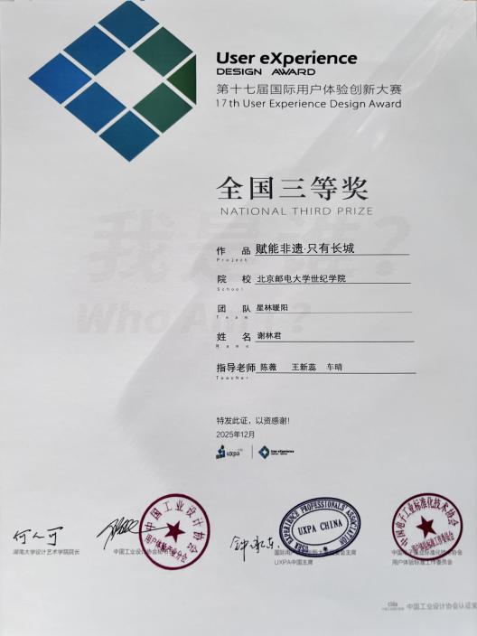 图:第十七届国际用户体验创新大赛获奖证书