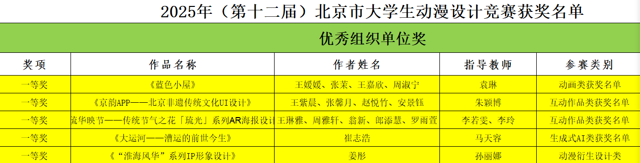 图:2025年北京市大学生动漫设计竞赛一等奖名单