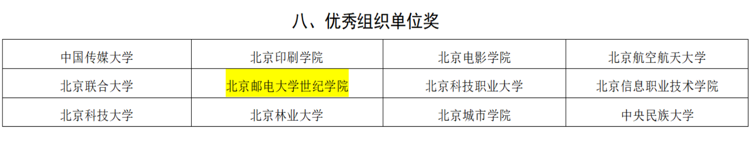 图:北京邮电大学世纪学院在2025年北京市大学生动漫设计竞赛中获优秀组织单位奖