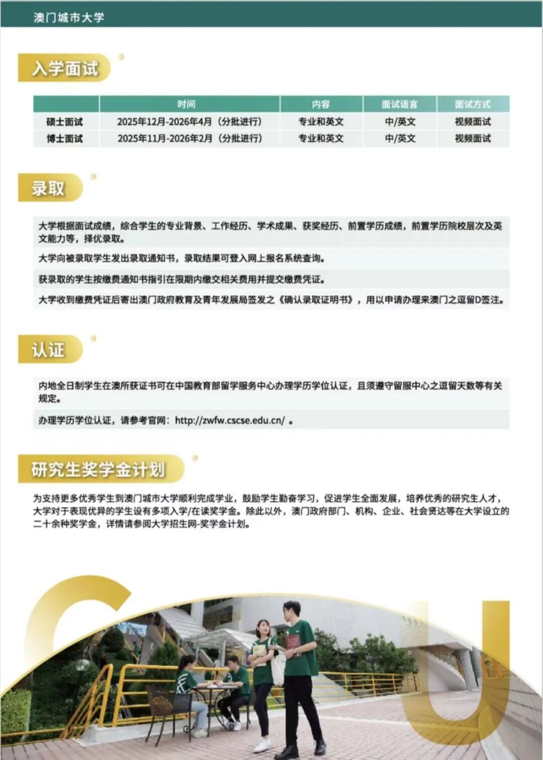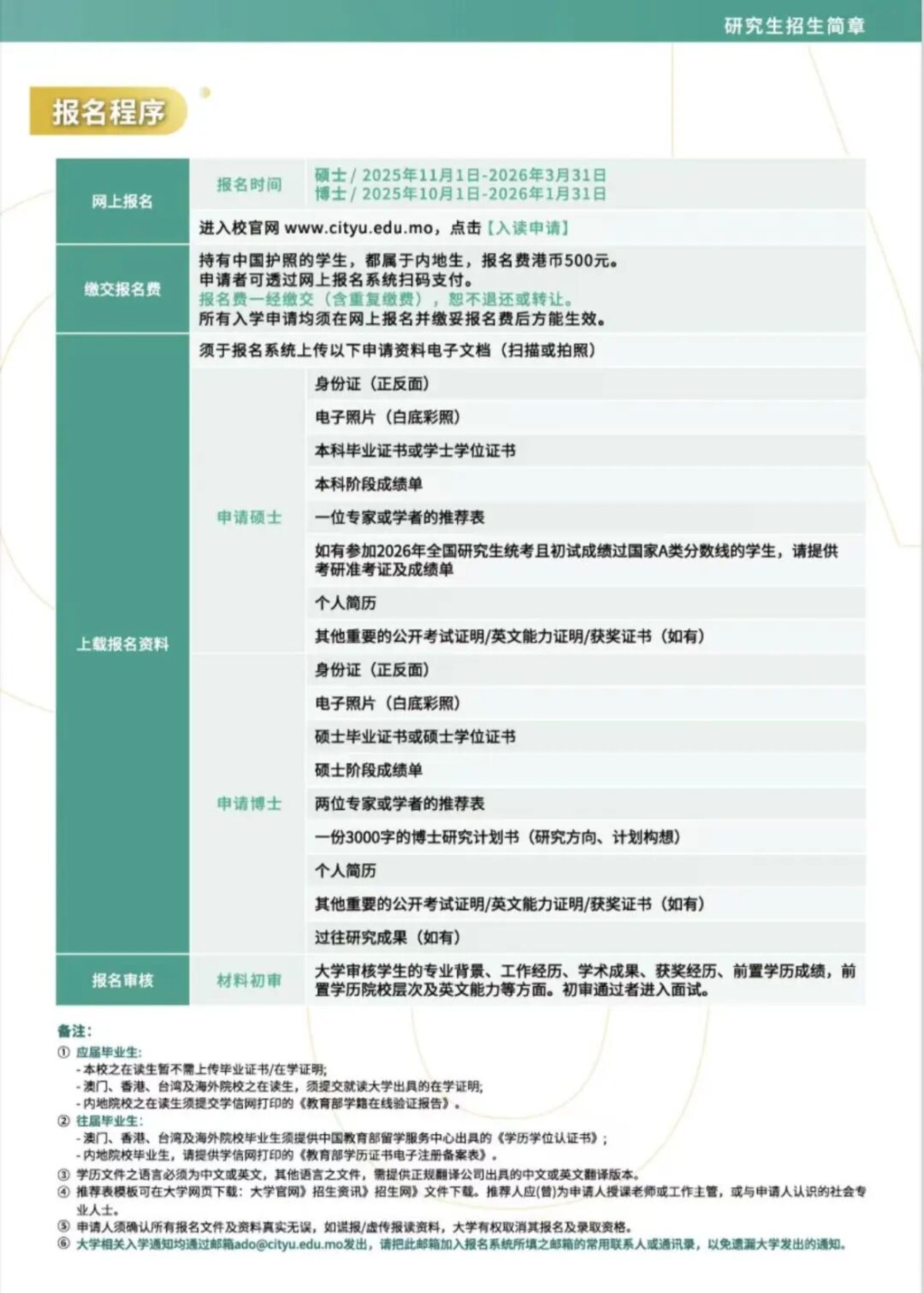 澳门城市大学网站报名截止时间为2026年3月31日。