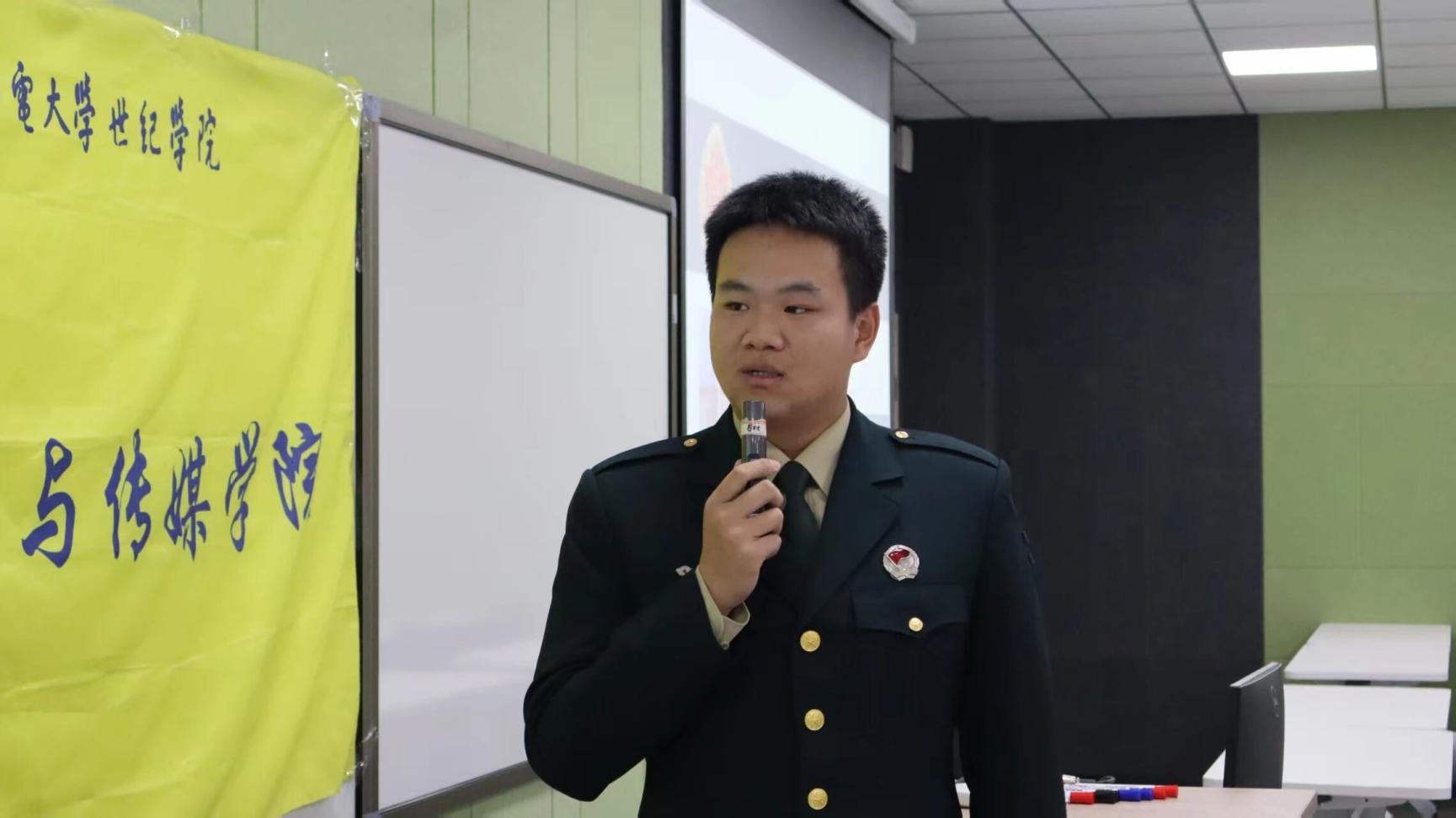 戎装虽卸志不改,军旅故事励人心。2025年10 月22日下午,艺术与传媒学院学生会学习部于学思楼218教室,精心组织了一场别开生面的退伍军人分享会。本次活动以 “青春铸军魂·奋进新征程” 为核心主题,特别邀请到学院团总支书记赵鑫老师、辅导员杜志超老师和辅导员朱孟娟老师,与2025级新生代表共同参与,聆听军旅故事,感悟军人精神。