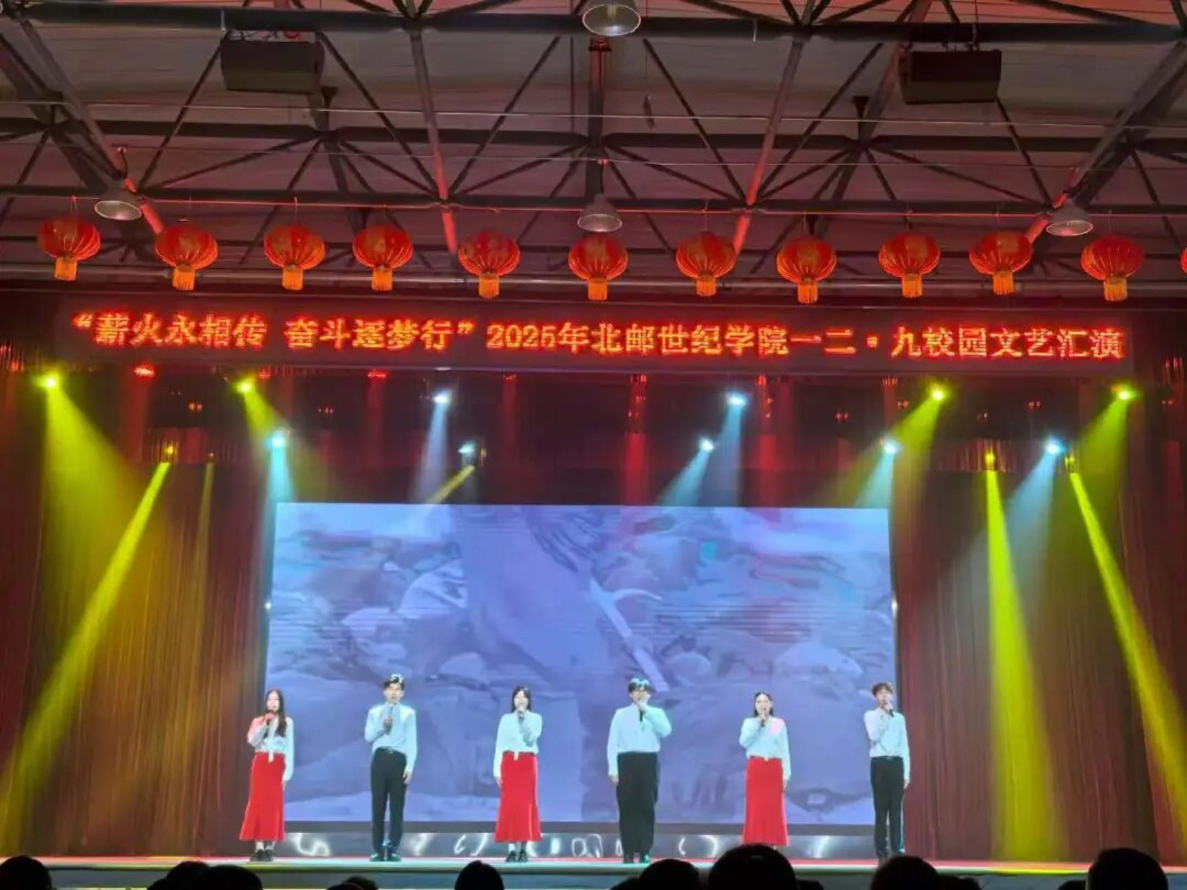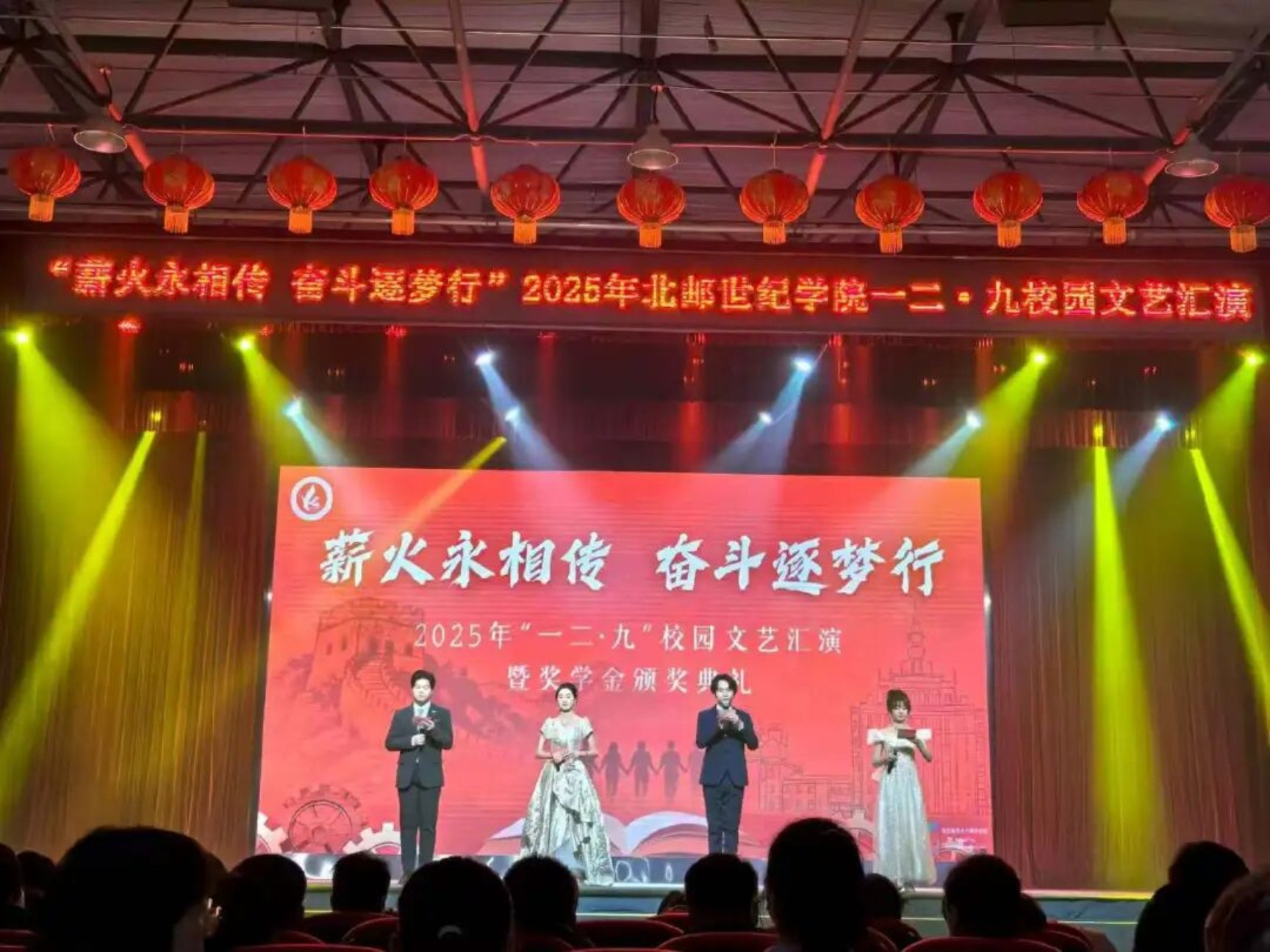 12月9日晚19时,北京邮电大学世纪学院2025年“一二·九”校园文艺汇演暨奖学金颁奖典礼于康庄文体中心隆重举行。艺术与传媒学院学子在舞台上以饱满的艺术表现力,充分展现了青年一代传承红色基因、砥砺奋进的青春风貌。