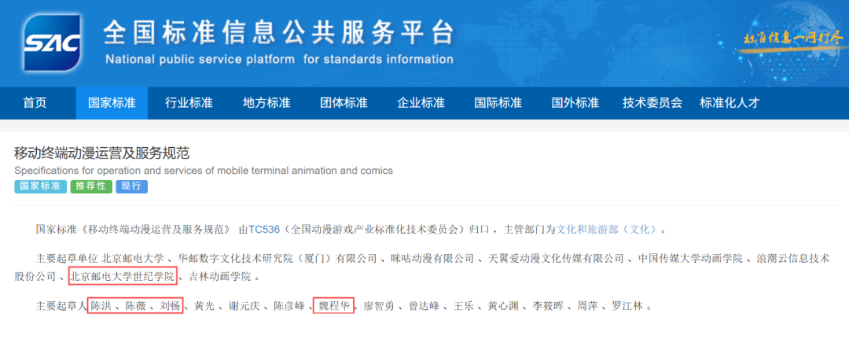 日前,由国家标准化管理委员会批准,学院科研处处长陈洪领衔,联合学院艺术与传媒学院陈薇、刘畅等教师主要参与制定的国家标准《移动终端动漫运营及服务规范》(GB/T 45693-2025)正式实施。该标准的出台,标志着我国移动终端动漫运营及服务领域从此有了国家级的统一规范,有效填补了行业领域空白。